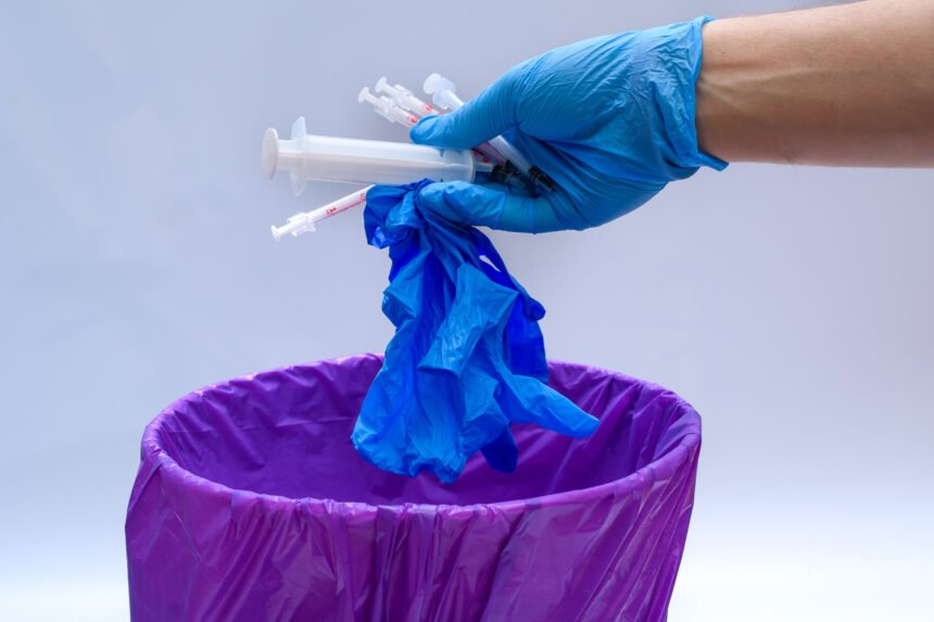 Os resíduos, explica a gestora, são divididos em grupos — infectantes, químicos, radioativos, comuns e perfurocortantes, cada um com exigências específicas de descarte: “Trabalhamos em um ambiente com diversos patógenos e estamos sempre suscetíveis à contaminação. O descarte incorreto pode gerar impactos graves, como a contaminação do solo, da água e até do ar, no caso da incineração”. Entre os grupos, os materiais perfurocortantes figuram entre os principais causadores de acidentes de trabalho. A orientação é que o descarte seja feito imediatamente após o uso, sem reencapar ou manipular os itens, seguindo rigorosamente os protocolos de segurança.