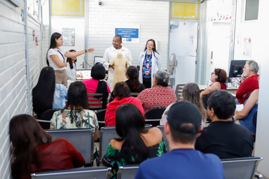 Dependendo do quadro clínico, o paciente é encaminhado a um centro especializado. É o caso do Centro de Referência em Atendimento a Diabetes e Hipertensão (Crahd), inaugurado em 2025, que conta com uma equipe especializada de médicos, enfermeiros, técnicos em enfermagem, farmacêutico, serviço social, psicólogo e nutricionista. “O nosso centro de referência atende pacientes de alto e muito alto risco. A equipe se reúne, discute o caso e entrega um plano de cuidados”, explica a enfermeira Daianne Mota, gestora do cuidado aos pacientes do Crahd.